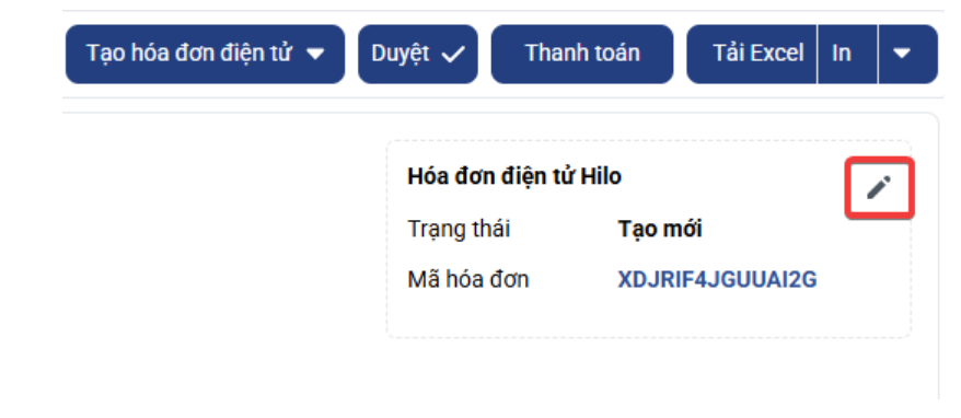 + Bấm nút Chỉnh sửa hoá đơn (nút hình chiếc bút ở ô hiển thị hoá đơn)