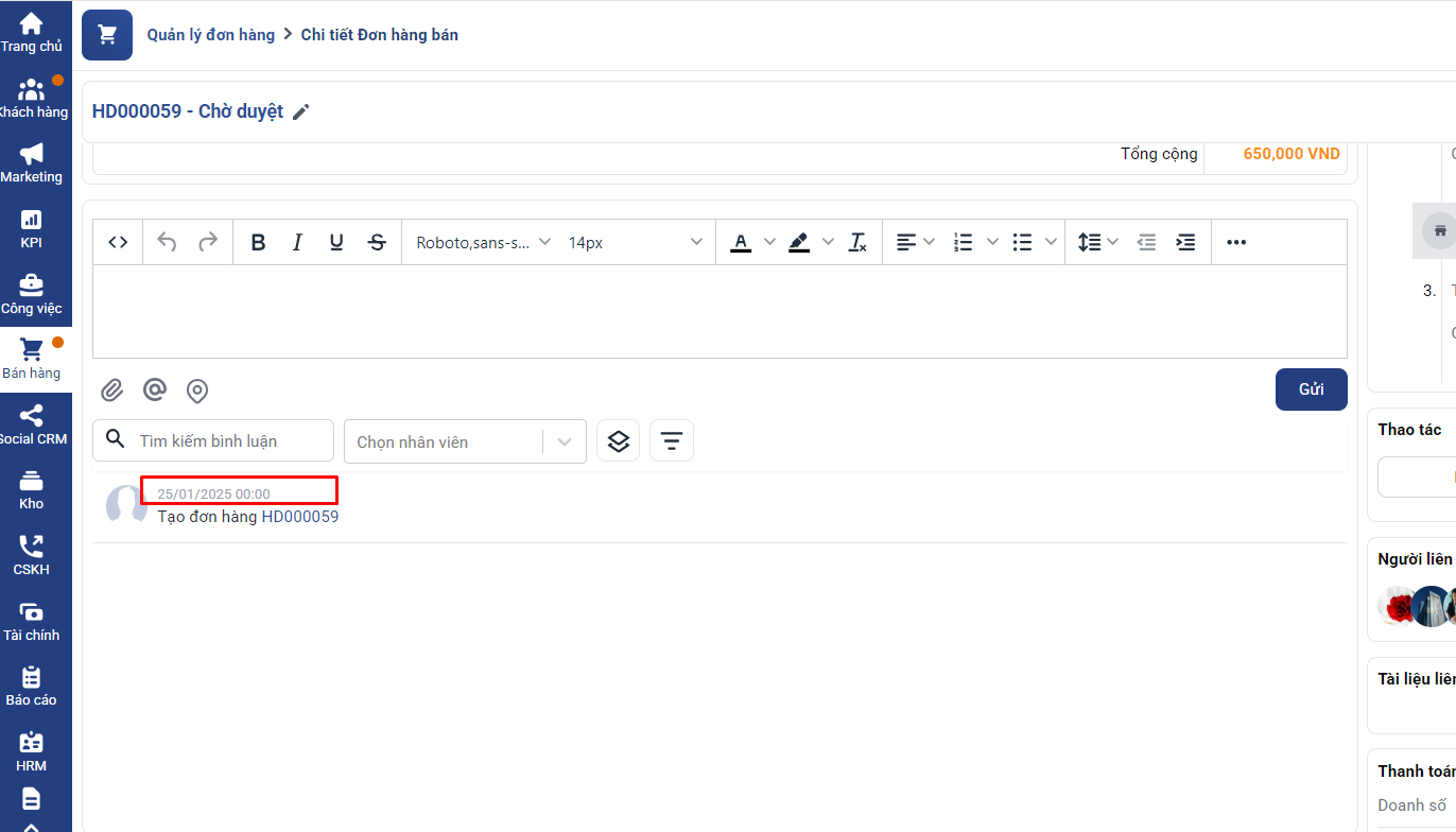 Ví dụ: Các đơn hàng trên Kiot Việt tạo ngày 24/01/2025 thì 0h00 ngày 25/01/2025 hệ thống sẽ cập nhật thông tin này trên Getfly: