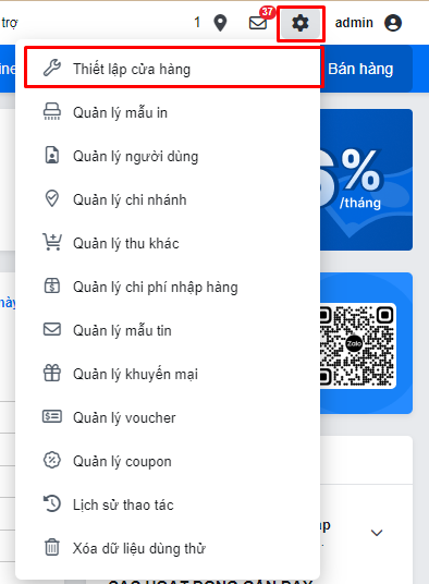 Từ menu Thiết lập chọn Thiết lập cửa hàng