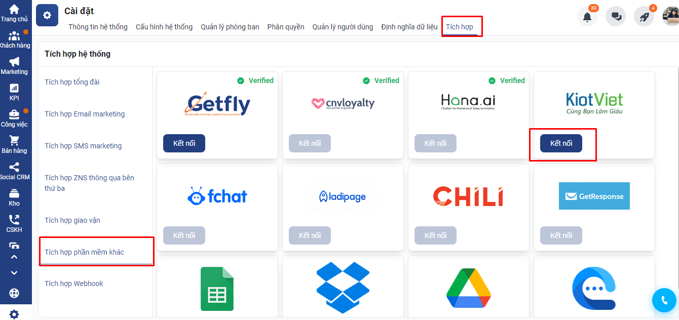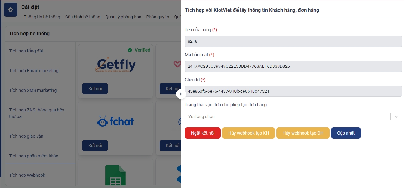 1. Về phần tích hợp giữa Getfly và KiotViet