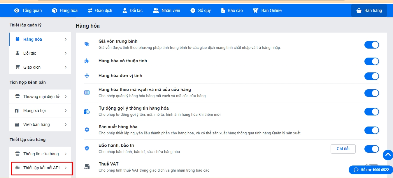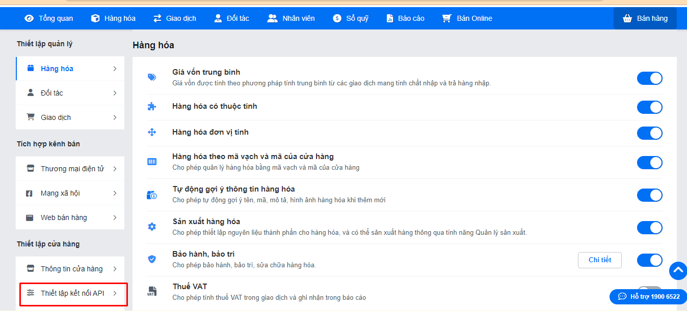 Bước 2. Tạo các thông số để cấu hình trên KiotViet