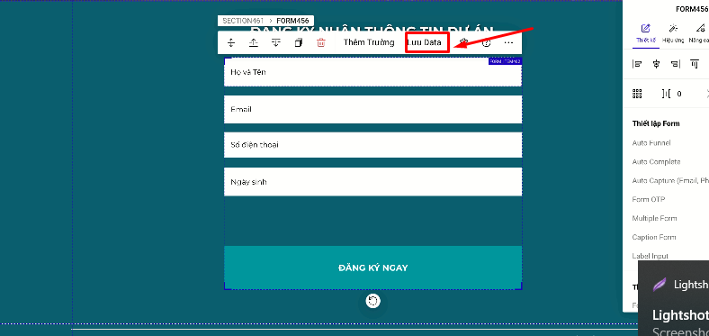 Bước 3. Lưu data và cấu hình Form