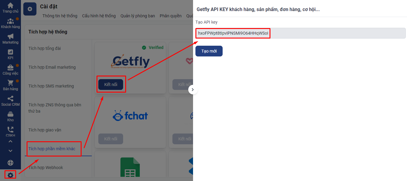 API key: API key lấy trong phần tích hợp của Getfly