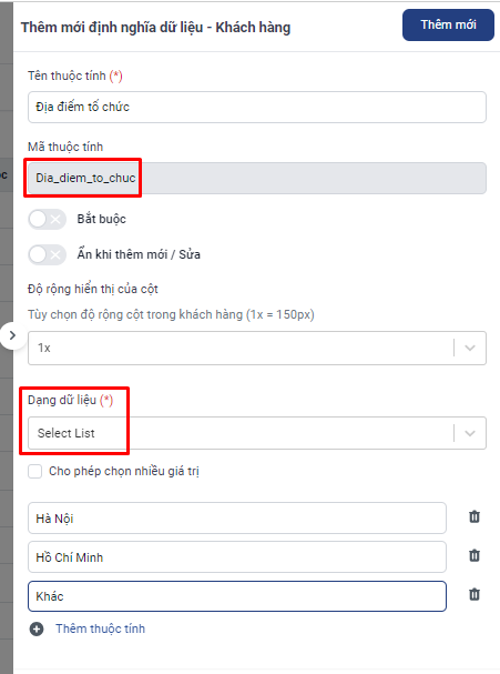 3.2. Thêm thông tin trường dữ liệu dạng selectlist