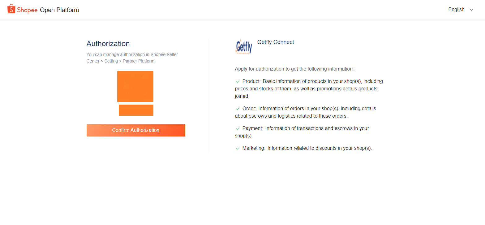 Bạn vào mục Module Social => Chọn Shoppe => Nhấn vào nút " Kết nối Shoppe" => Đăng nhập với các thông tin tài khoản shoppe của bạn và xác minh => Sau đó "Confirm Authorization" để kết nối vào Getfly