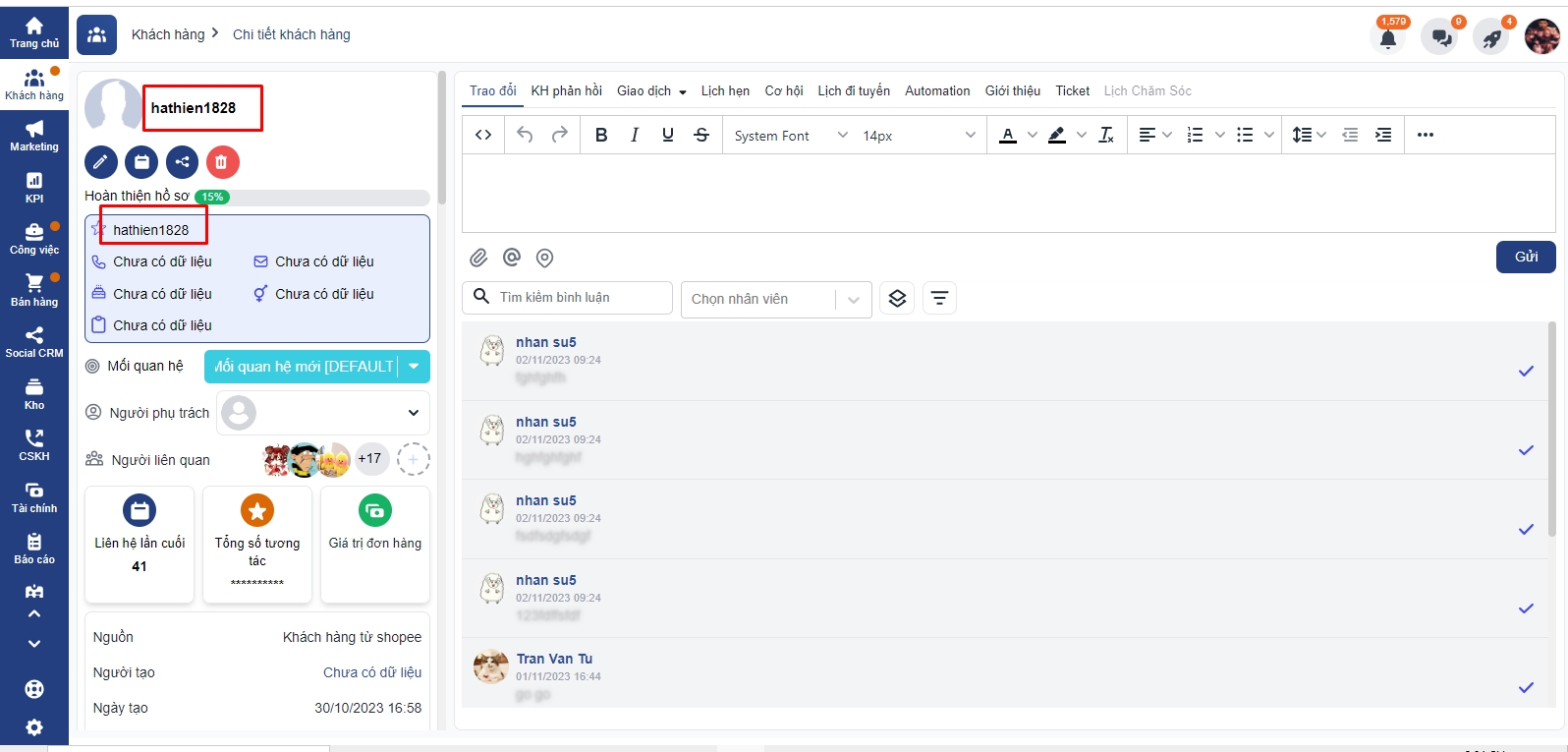 - Mối quan hệ của các khách hàng đổ về từ Shoppe sẽ mặc định là mối quan hệ khởi tạo trên hệ thống ( mối quan hệ đầu tiên)