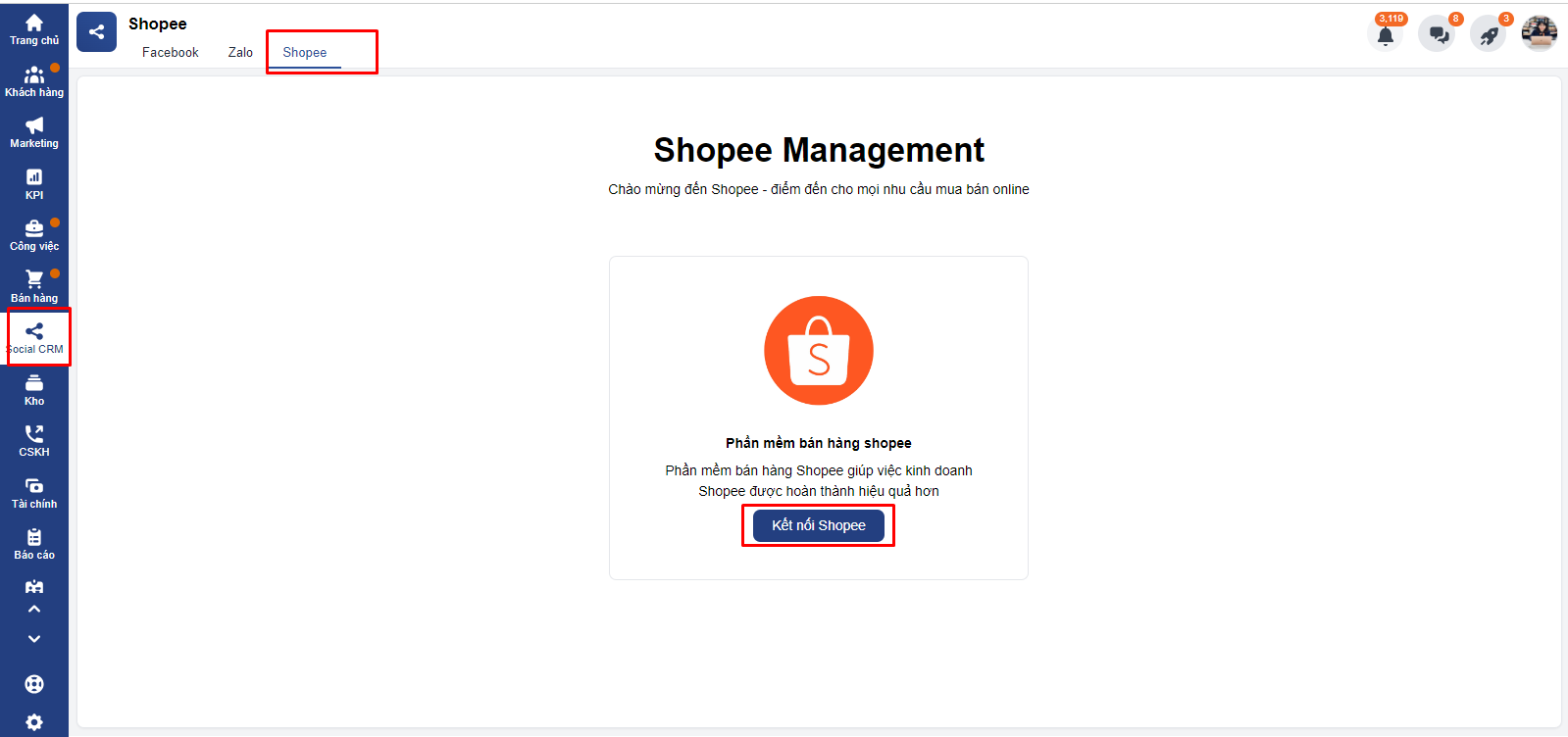 Bước 1: Tích hợp Shoppe vào Getfly