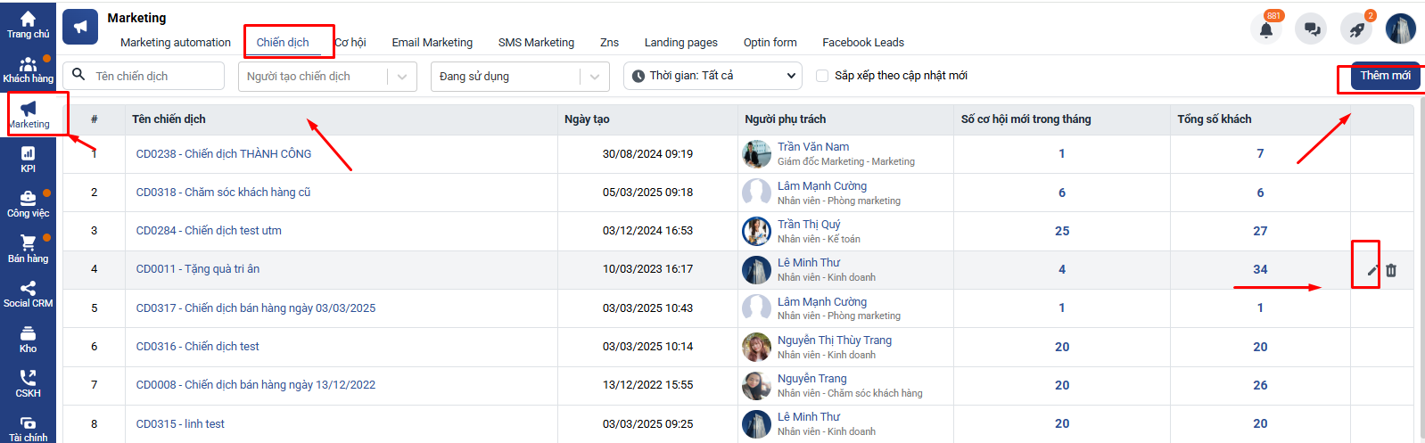 3. Hướng dẫn tạo mới, sửa, xóa chiến dịch