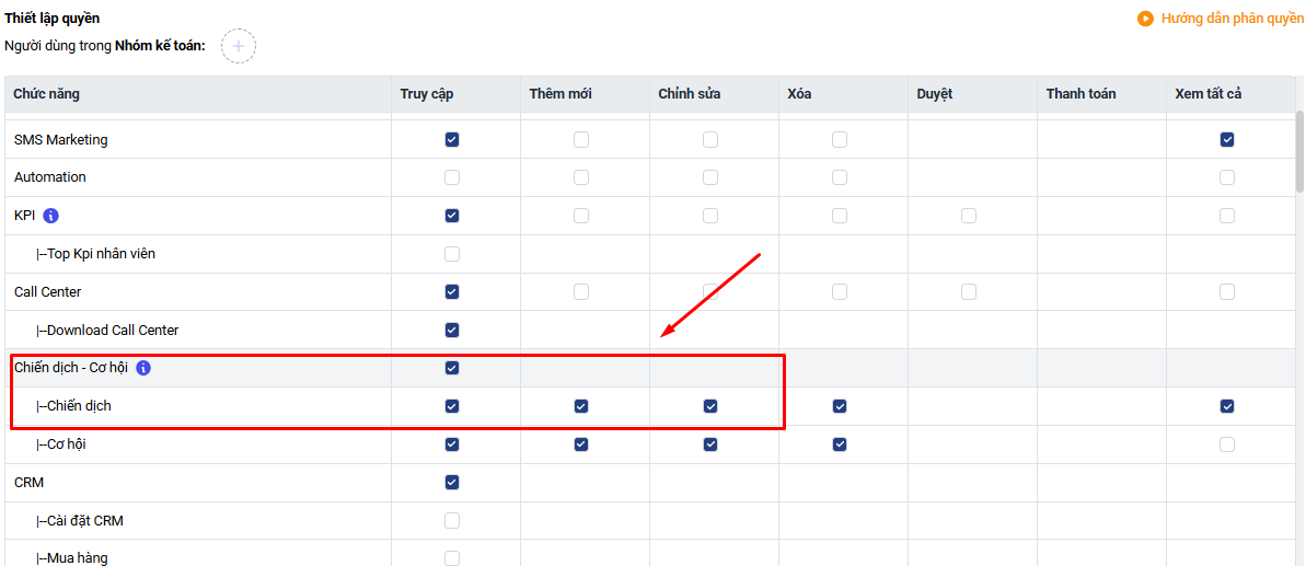 Để tạo và quản lý chiến dịch trên hệ thống bạn cần phải được phân quyền cho chức năng Chiến dịch