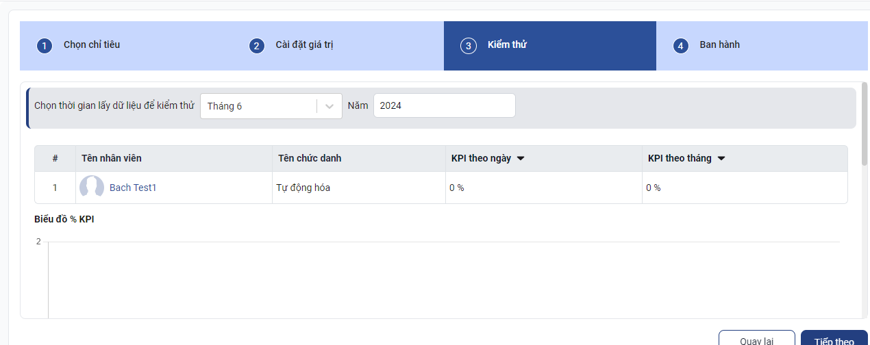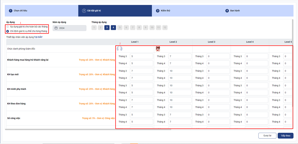 Thiết lập chỉ tiêu cụ thể cho từng level, từng chỉ tiêu cho các tháng đã lựa chọn.