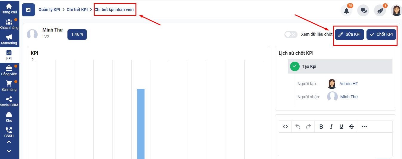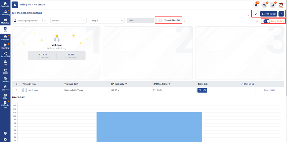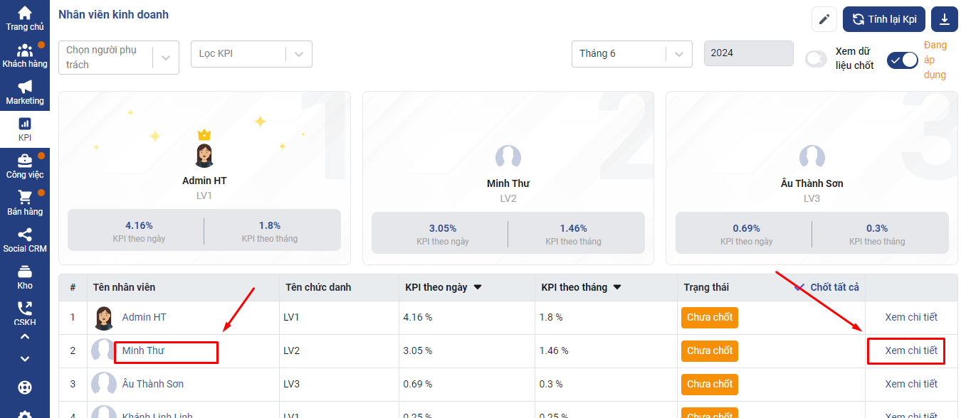 Bạn có thể xem chi tiết KPI của từng nhân viên bằng cách click Xem chi tiết