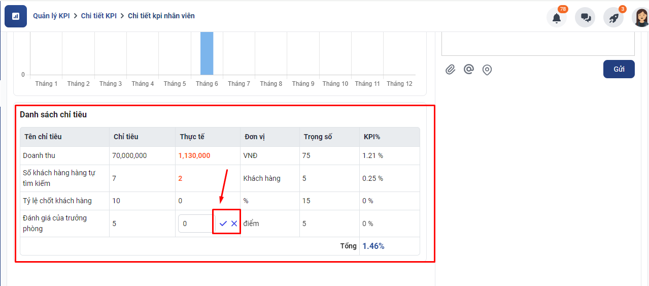 Cập nhật giá trị thực tế của các chi tiêu KPI tự nhập