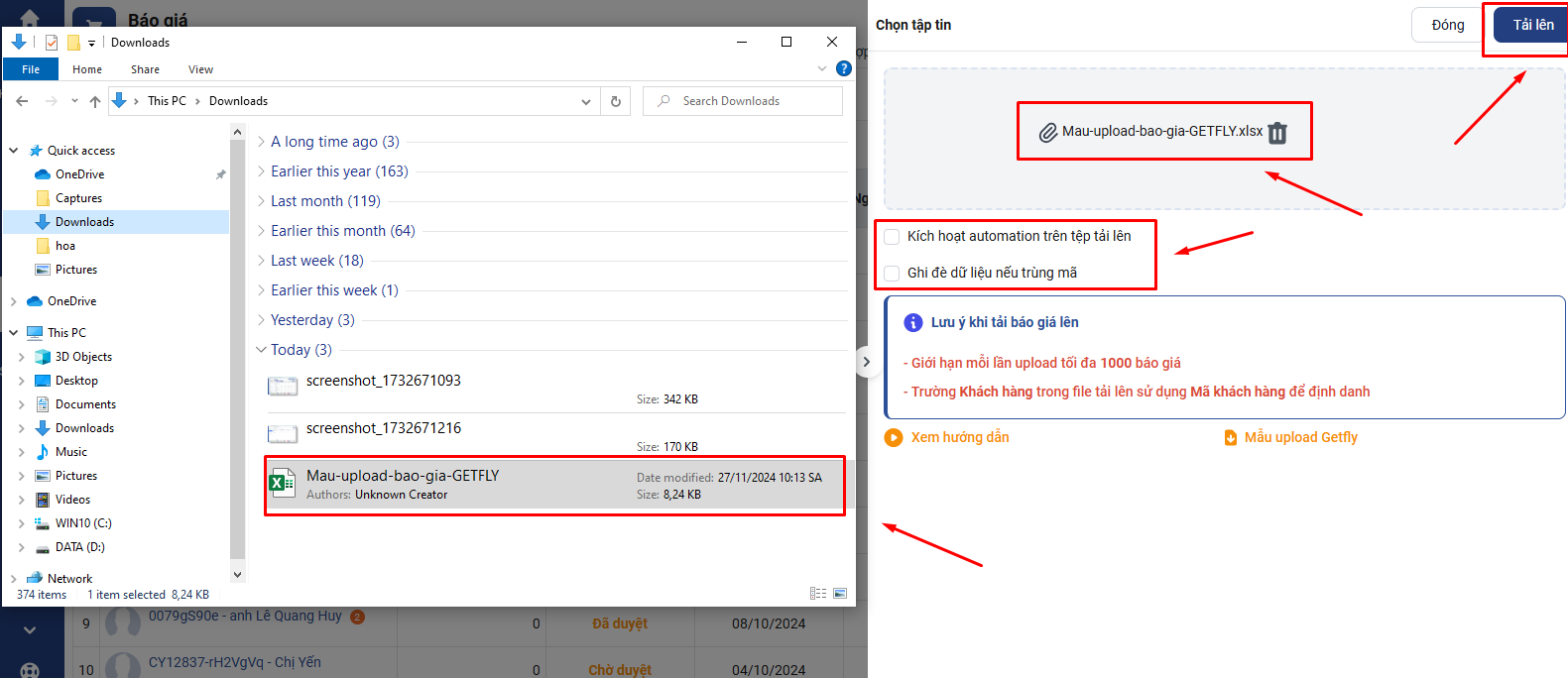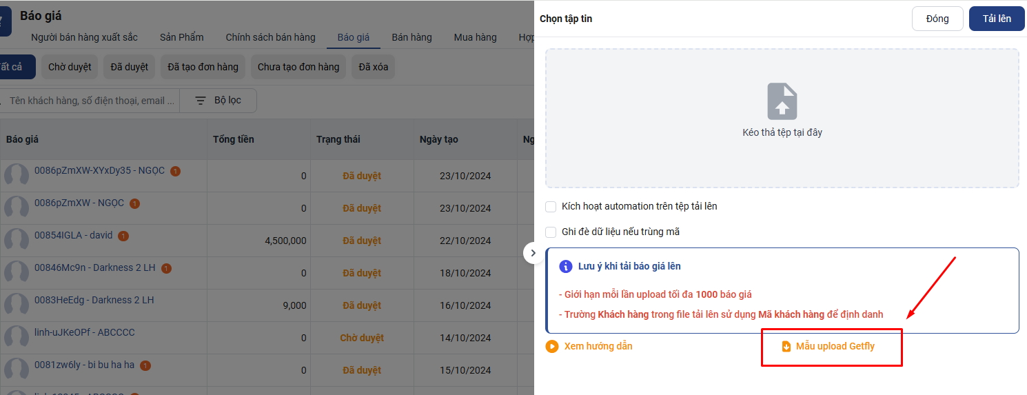 Bước 3: Thao tác upload file báo giá lên hệ thống Getfly.