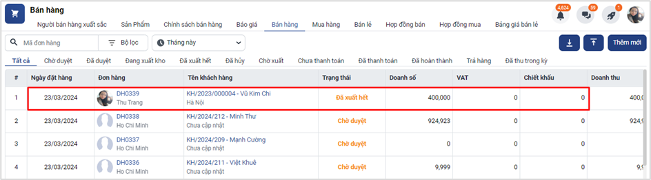 Duyệt: Duyệt những đơn hàng bán được tạo (thuờng áp dụng với cấp quản lý và những bên nào áp dụng quy trình duyệt đơn hàng)