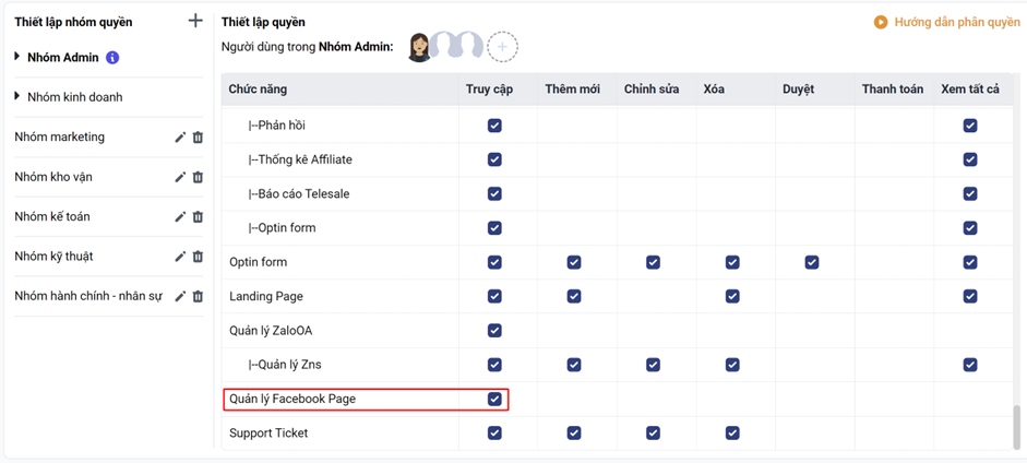 * Tài khoản tích hợp phải được phân quyền **Quản lý Facebook Page**