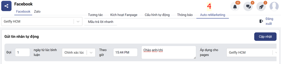 * Tối ưu hoạt động remarketing ( gửi inbox tự động)