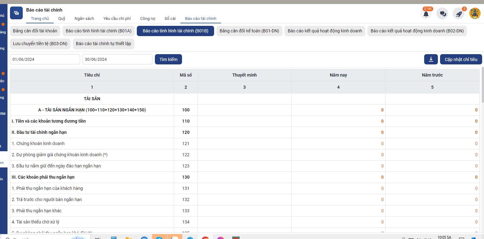Báo cáo tình hình tài chính (B01A)