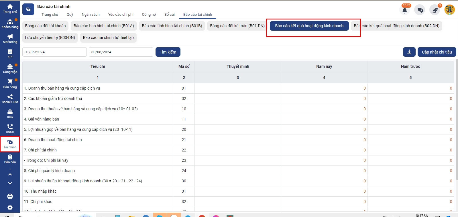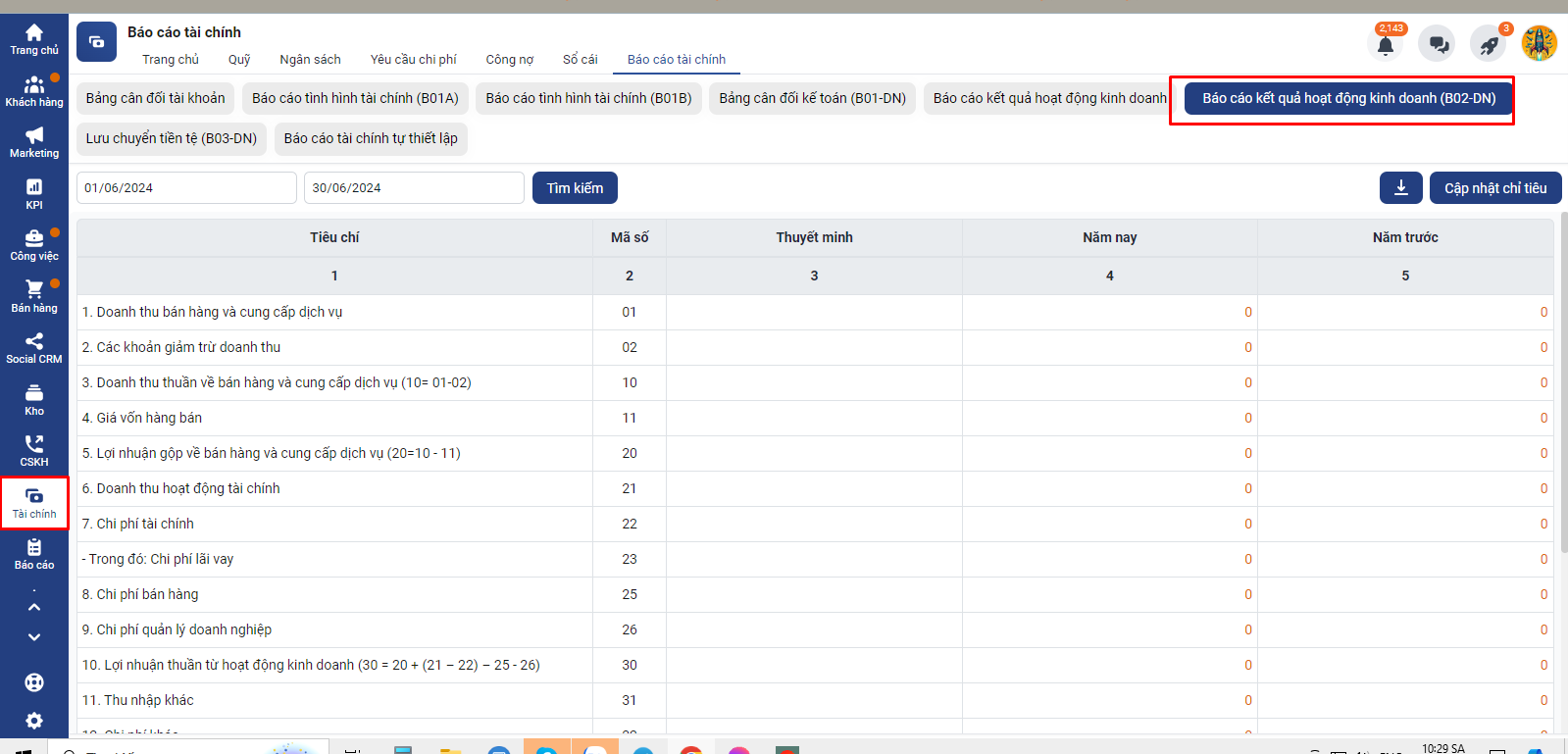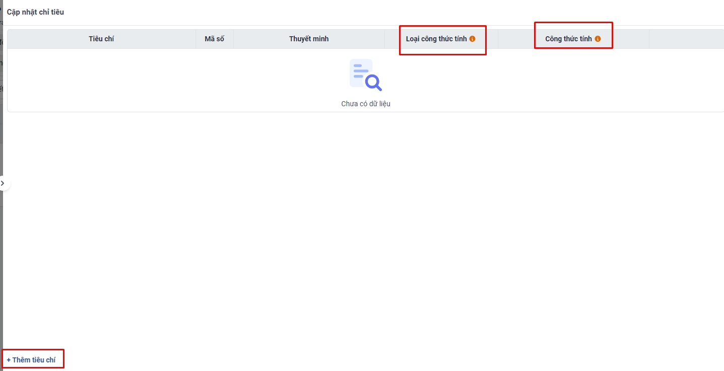 2. Hướng dẫn thiết lập chỉ tiêu ở báo cáo