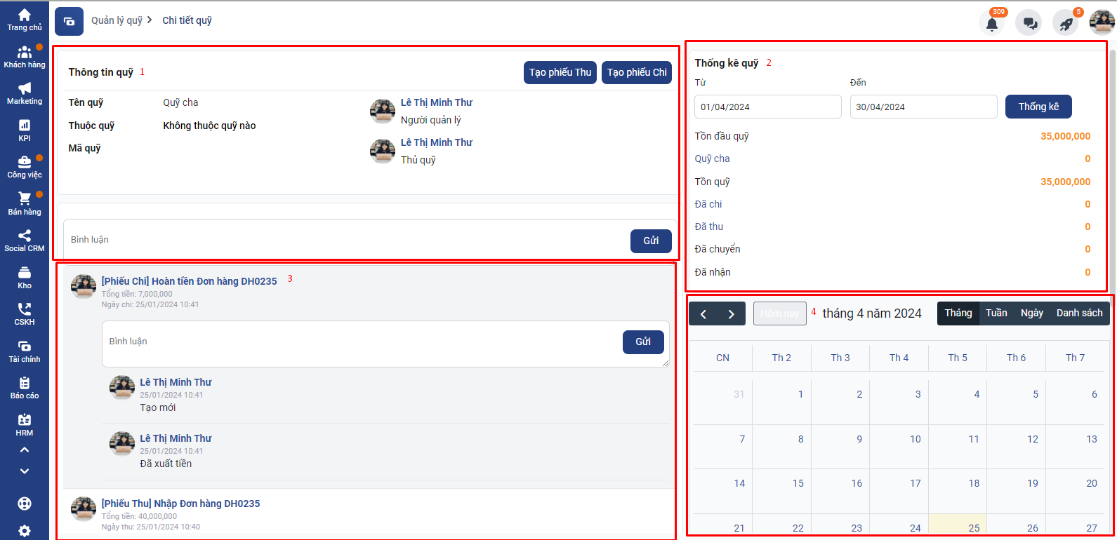 Để xem chi tiết Quỹ, Bạn lựa chọn vào tên Quỹ. Trong quỹ bạn có thể xem được toàn bộ các hoạt động trong quỹ.
