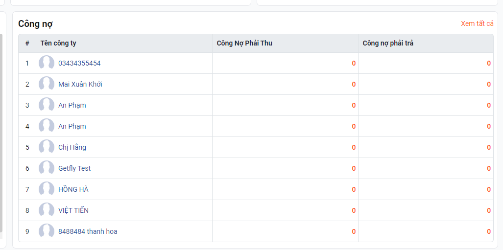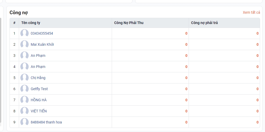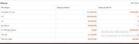 Tiếp đến phần công nợ, thống kê tất cả những công nợ phải thu và công nợ phải trả của khách hàng