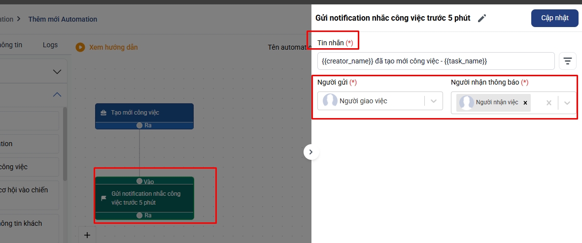 Bước 4: Bạn thiết lập lại nội dung thông báo và người nhận thông báo trong hệ quả Gửi notification