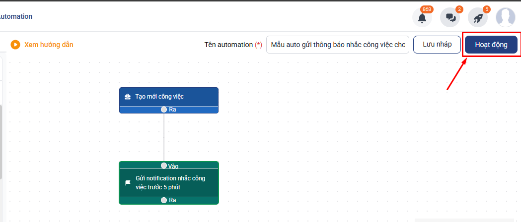 Bước 5: Ấn Hoạt động để kích hoạt automation