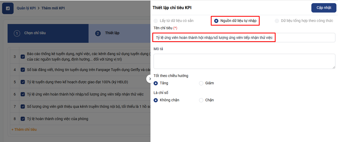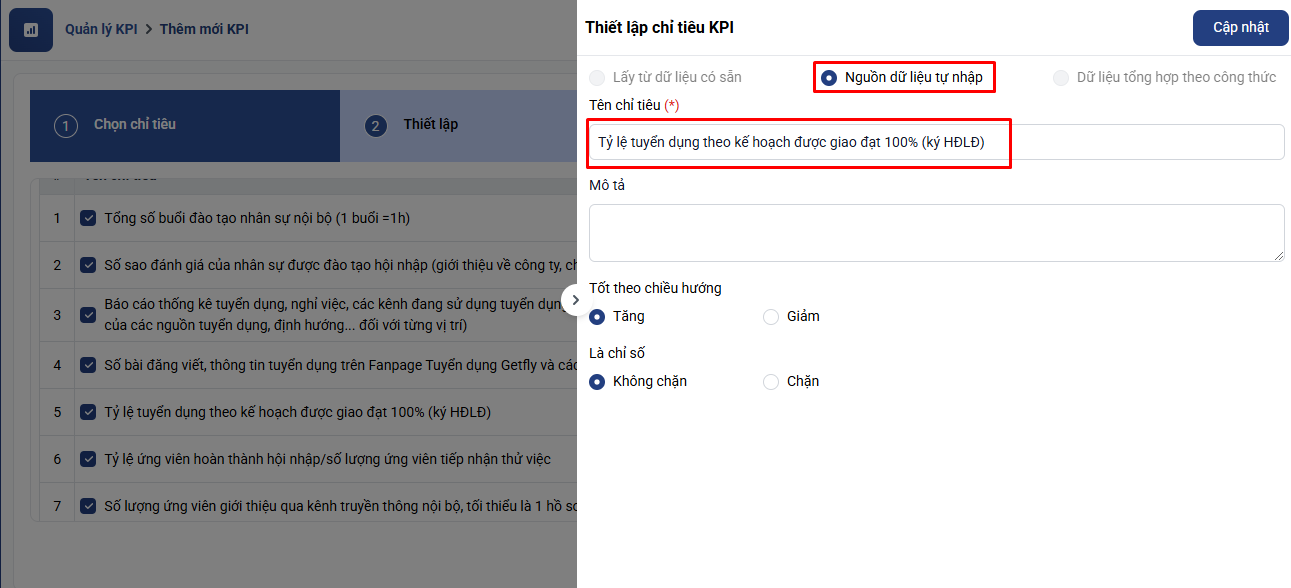 6. Hoàn tất thiết lập KPI: