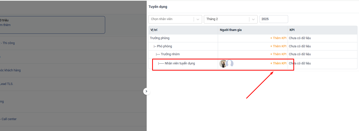 Các nhân viên trong phòng ban thuộc vị trí này sẽ mặc định được thêm vào KPI