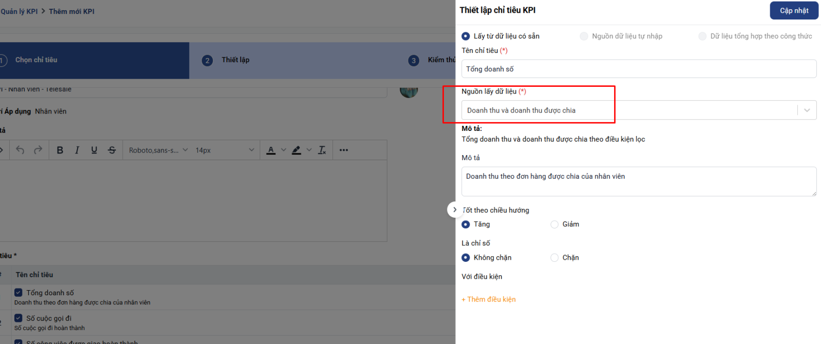 6. Hoàn tất thiết lập KPI: