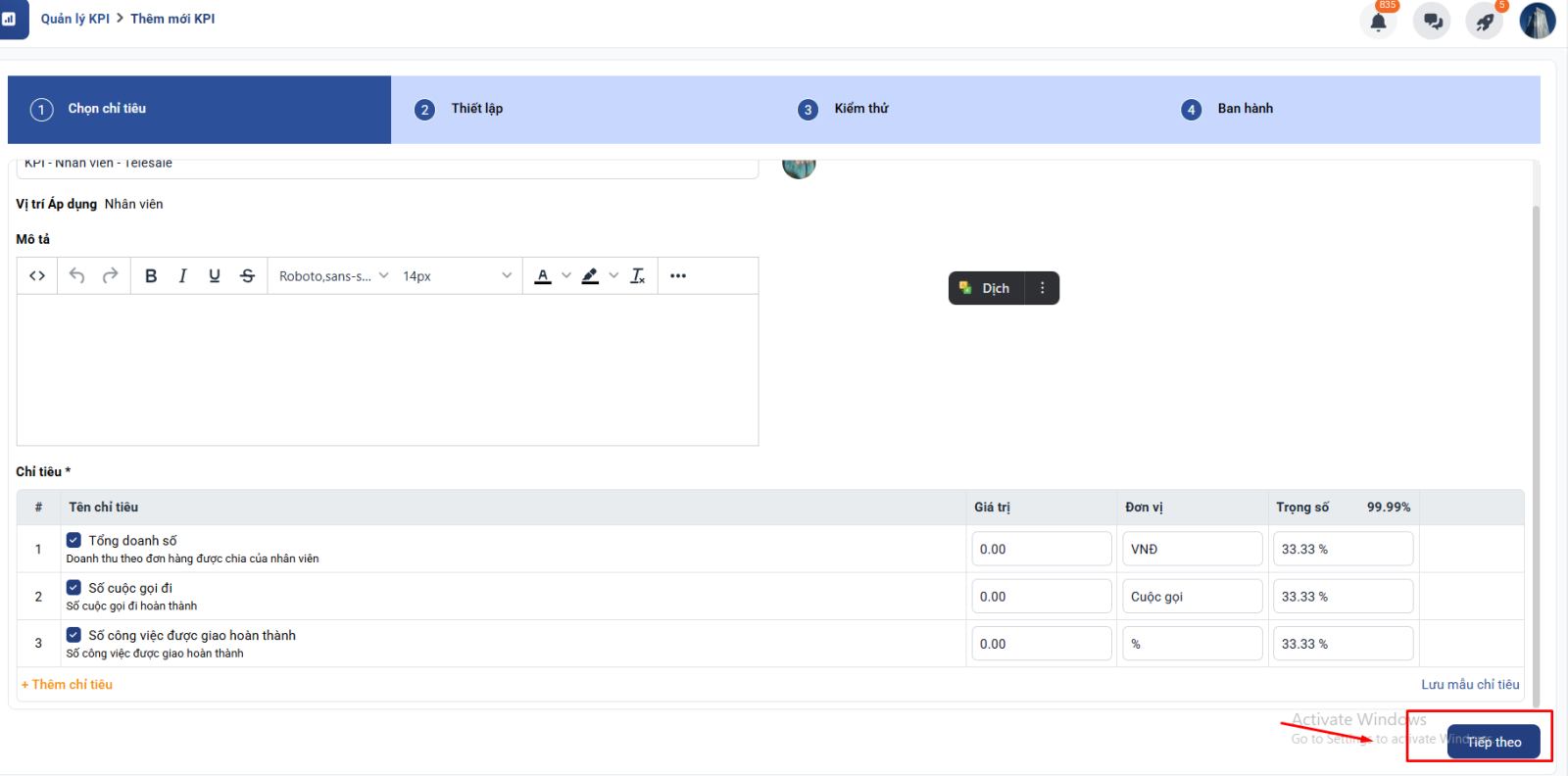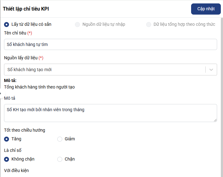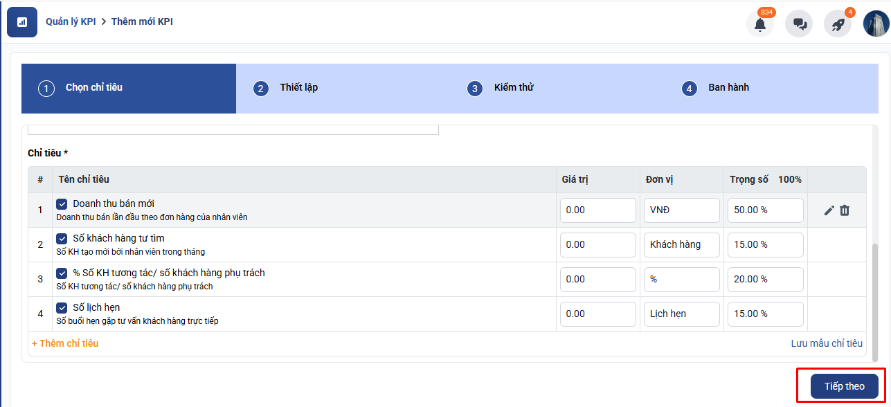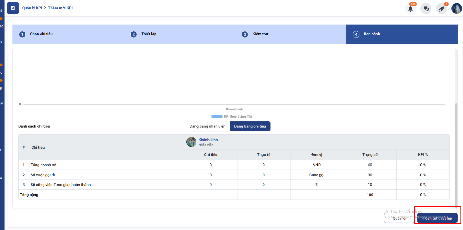 Bước 6: Hoàn tất thiết lập KPI:
