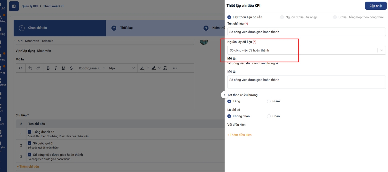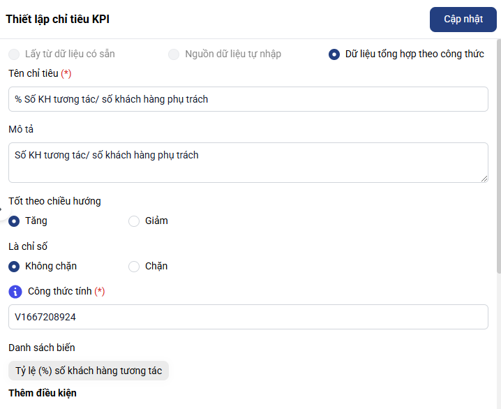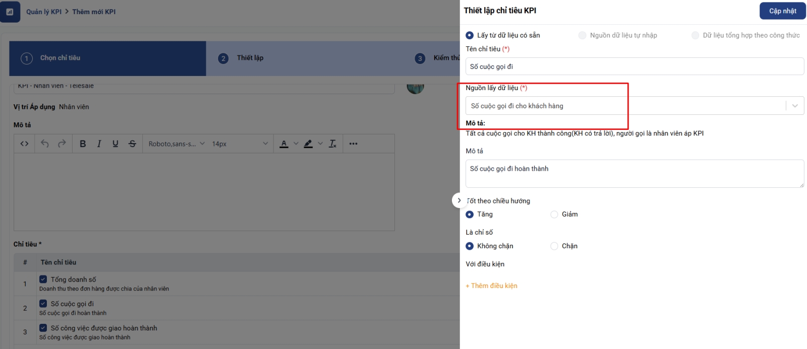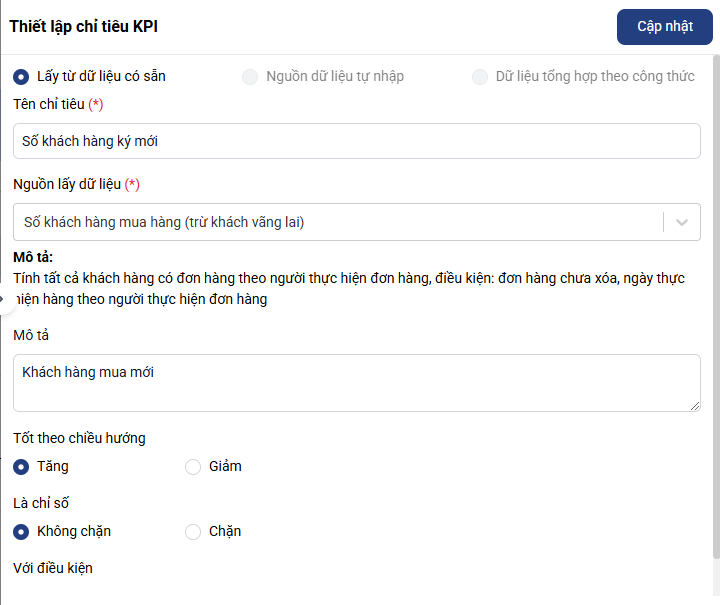 Bước 6: Hoàn tất thiết lập KPI:
