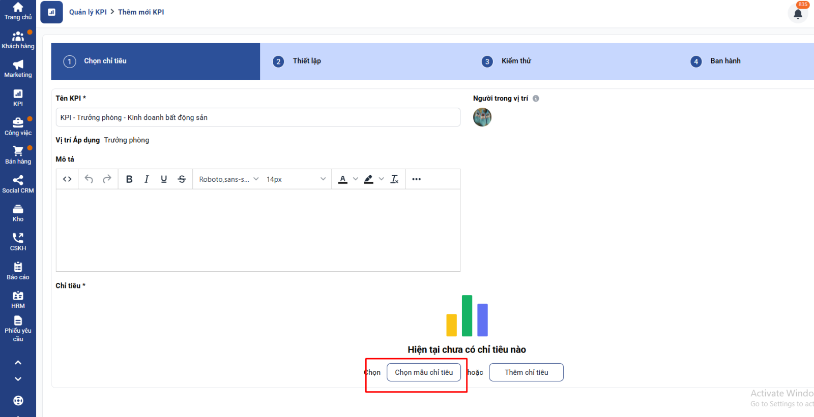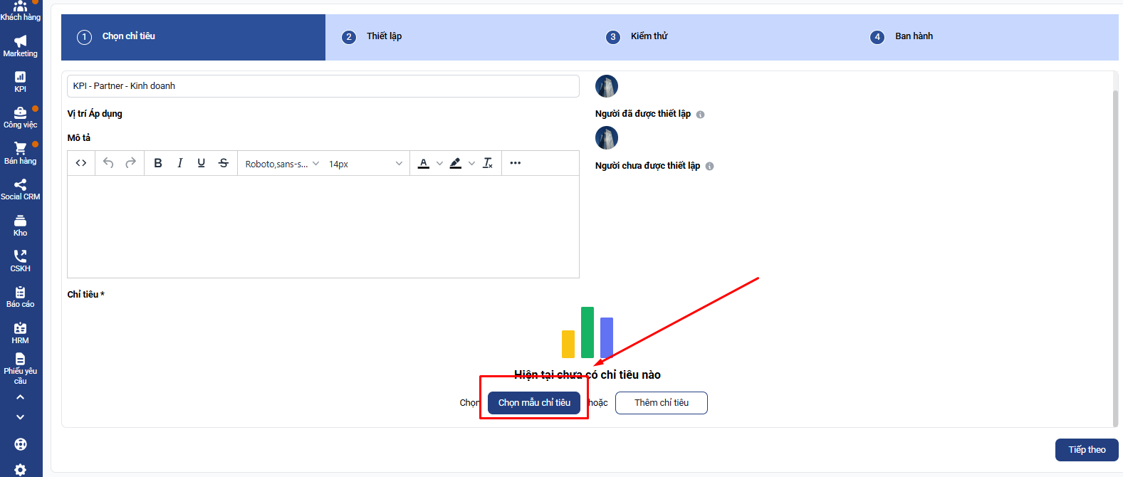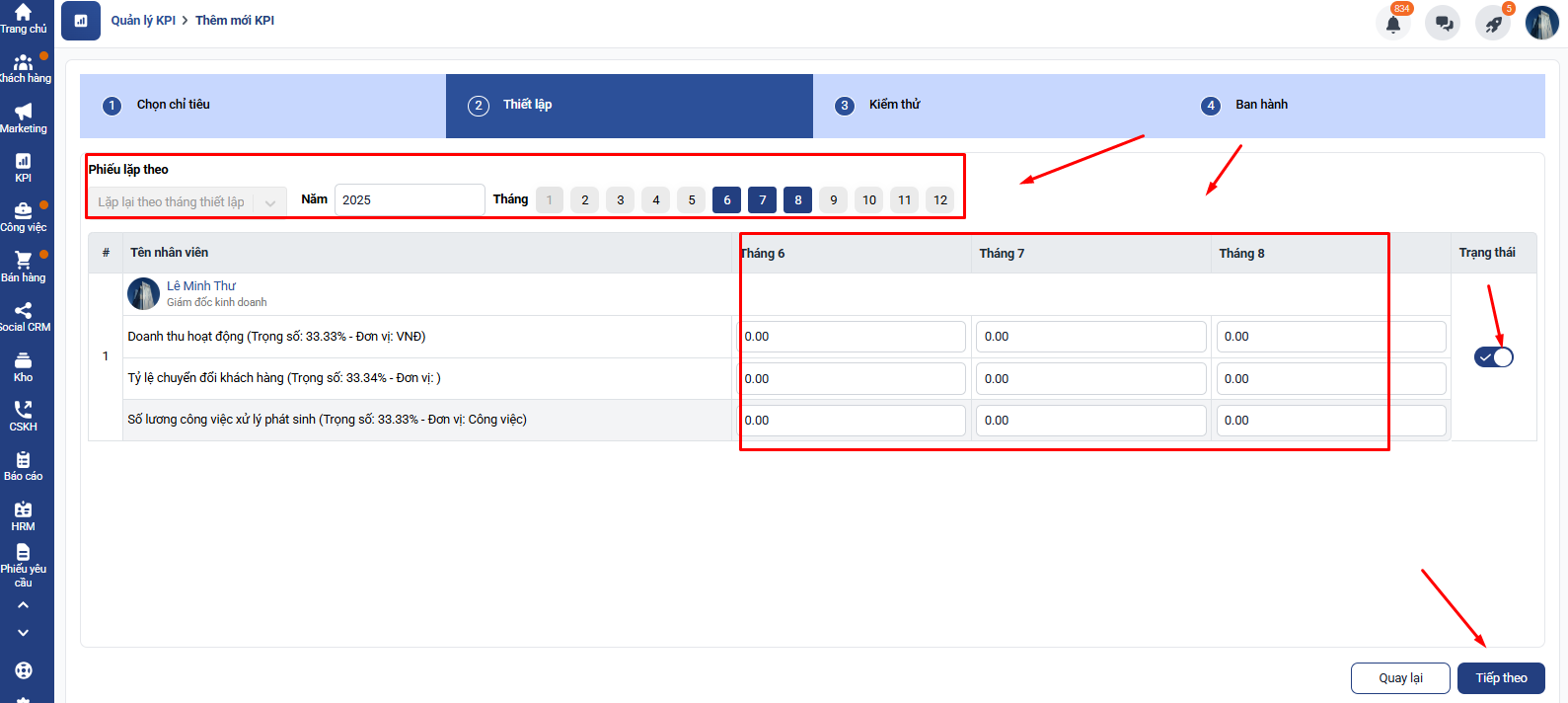 Bước 5: Bạn ấn tiếp theo và hoàn thành thiết lập để thêm mới bộ chỉ tiêu kpi dành cho Giám đốc kinh doanh bất động sản: