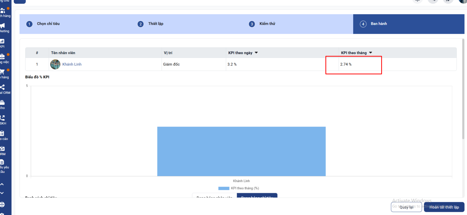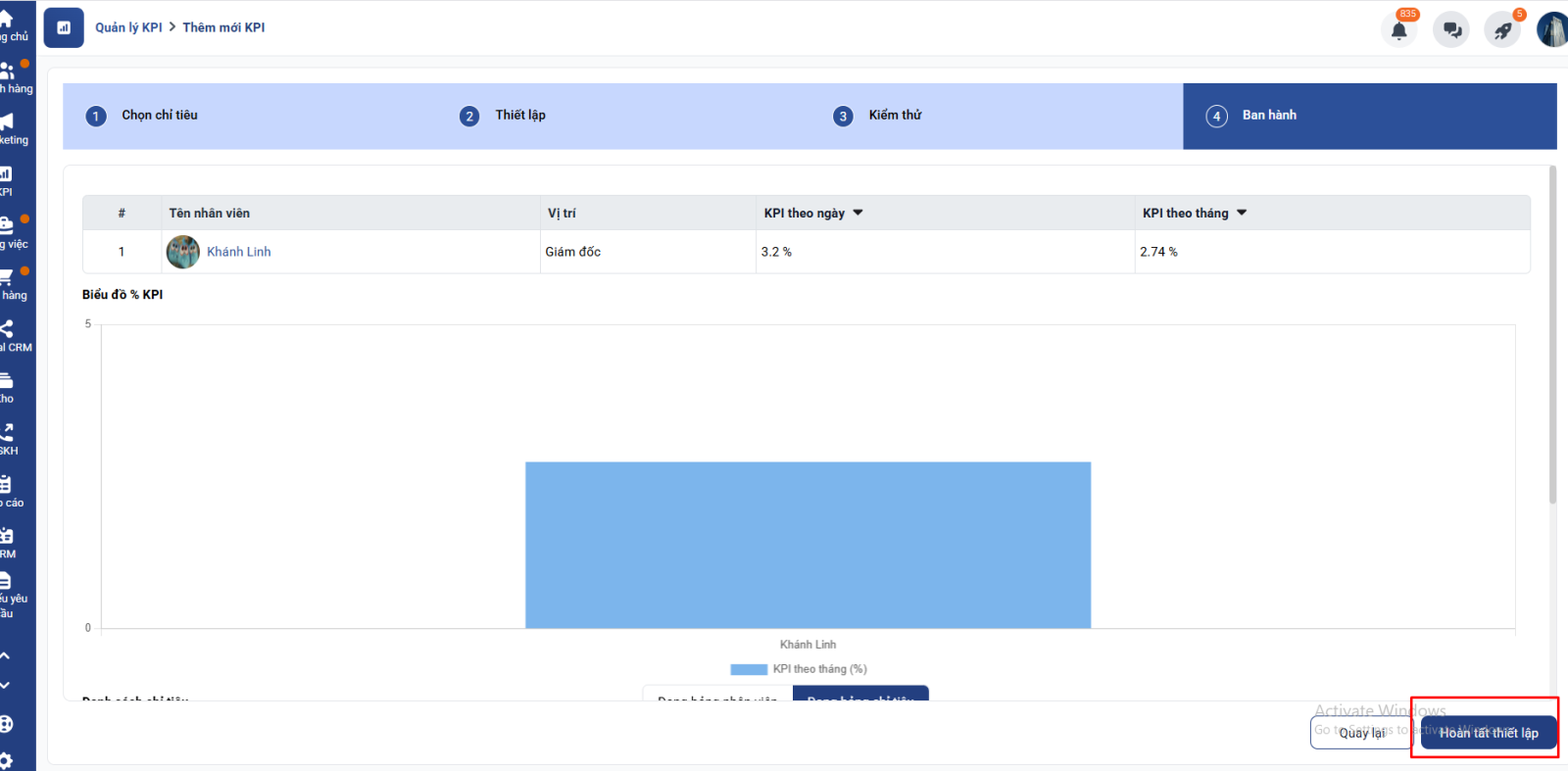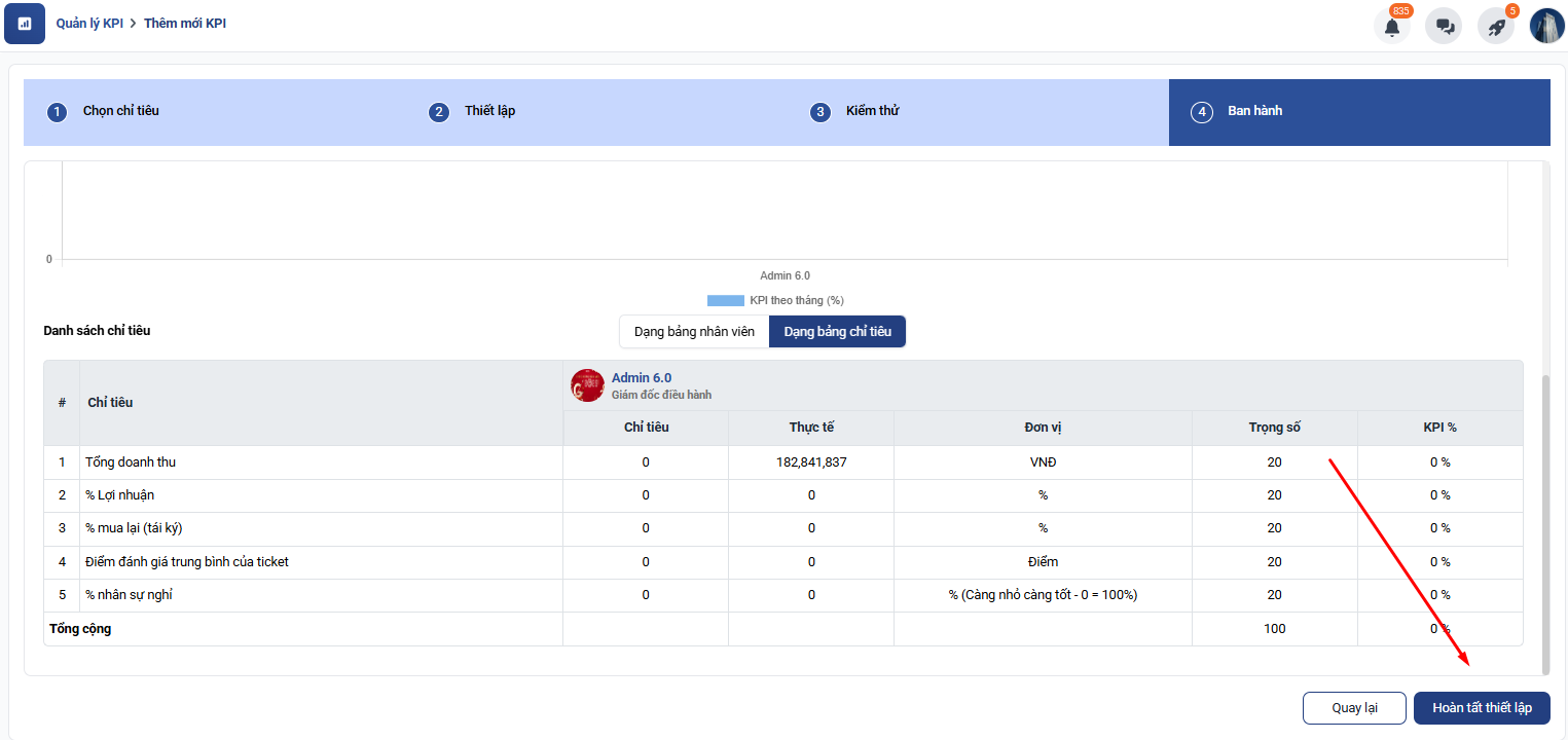 6. Hoàn tất thiết lập KPI: