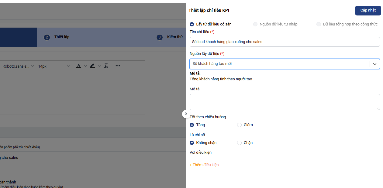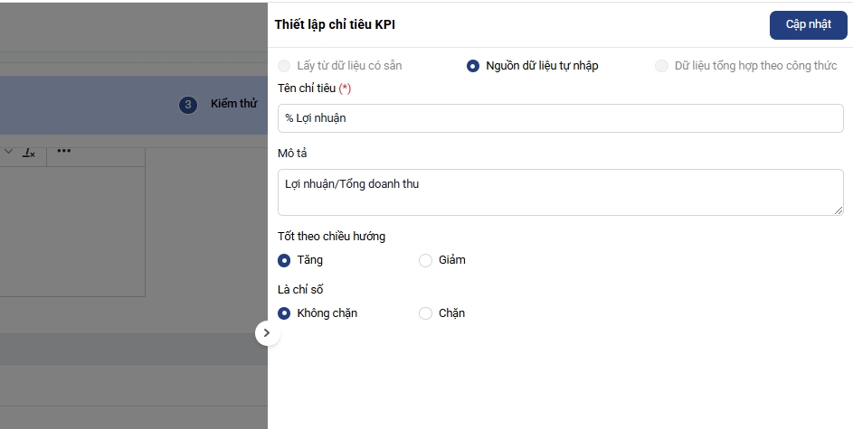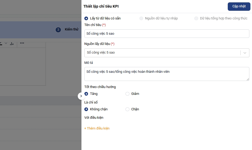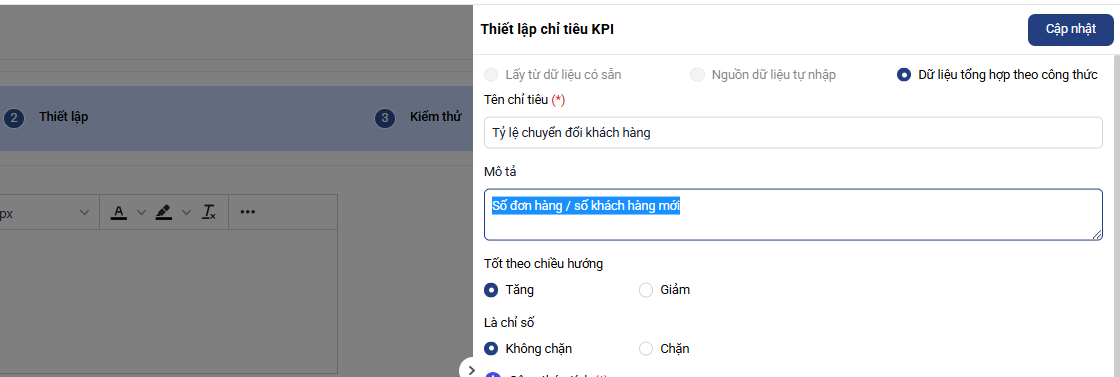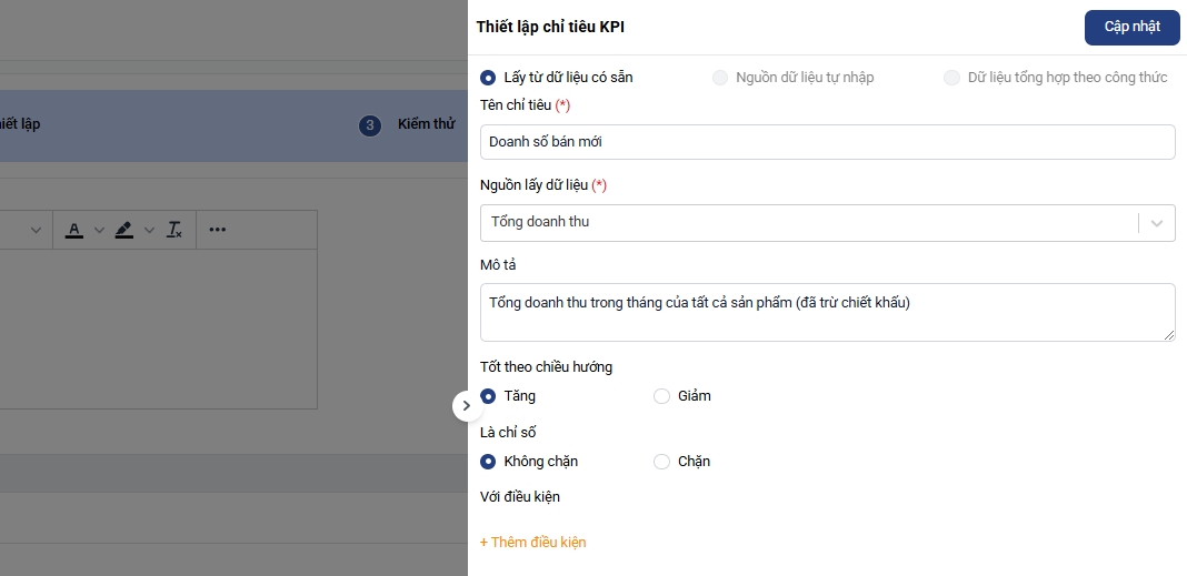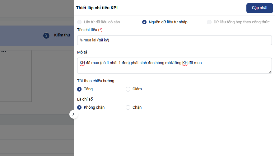 6. Hoàn tất thiết lập KPI: