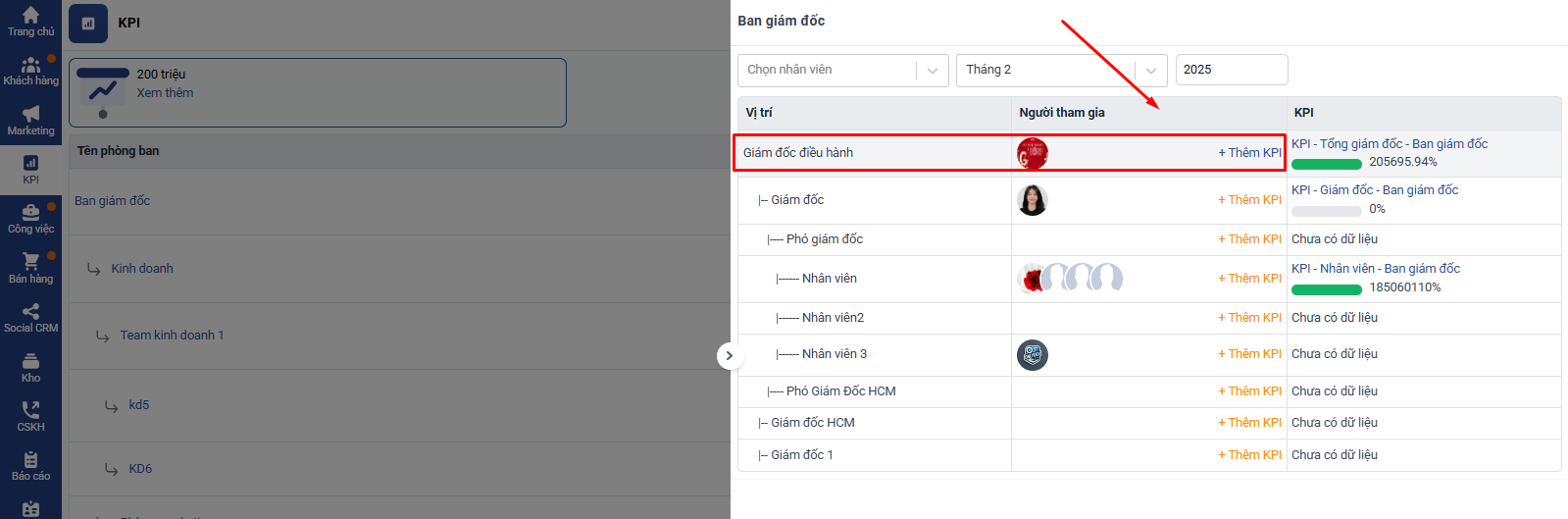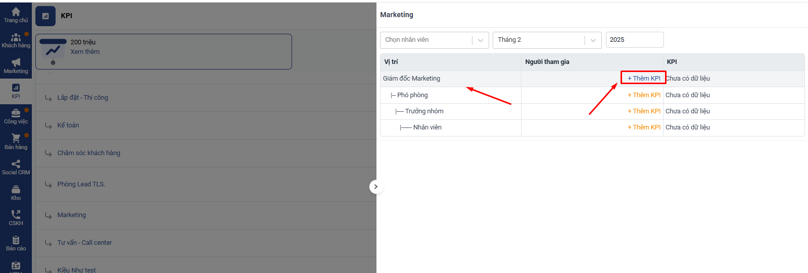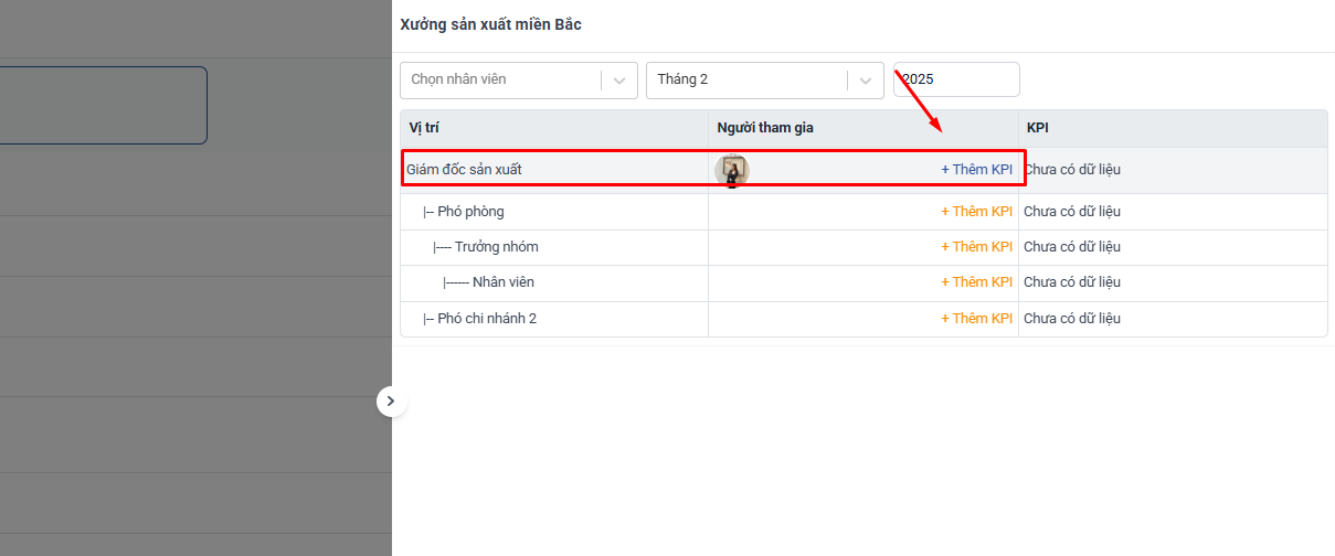 Các nhân viên trong phòng ban thuộc vị trí này sẽ mặc định được thêm vào KPI