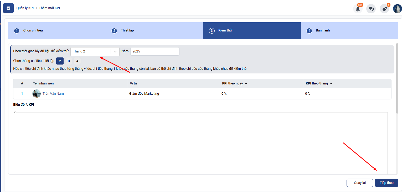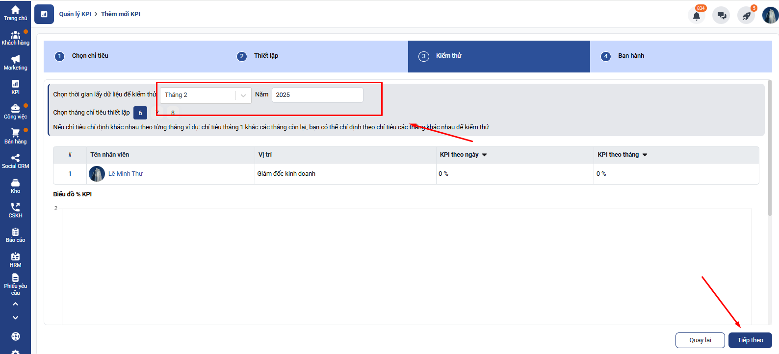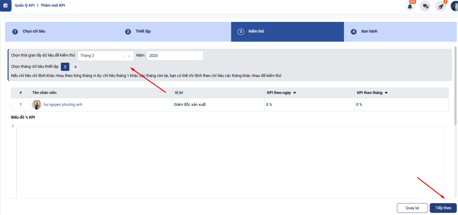 4. Cài đặt nhân viên và thời gian áp dụng KPI: