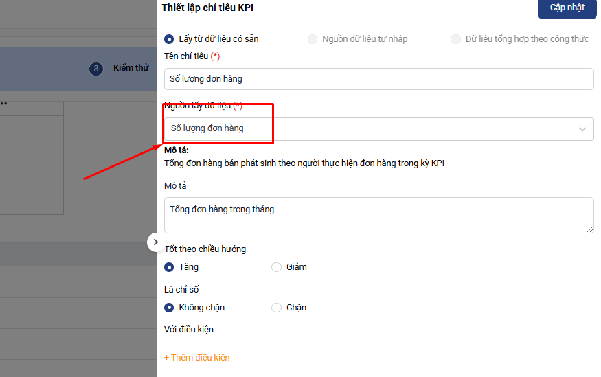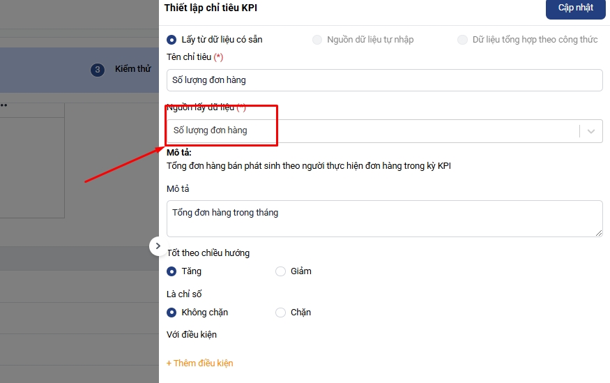 - Số lượng đơn hàng: Lấy tự động từ nguồn dữ liệu Số lượng đơn hàng