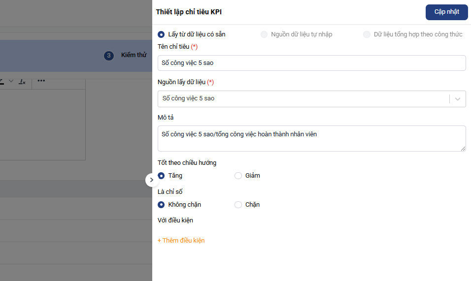 - Số công việc 5 sao: Lấy tự động theo nguồn dữ liệu Số công việc 5 sao