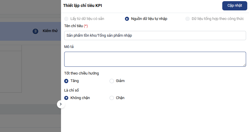 - Sản phẩm tồn kho/Tổng sản phẩm nhập: Nguồn dữ liệu tự nhập
